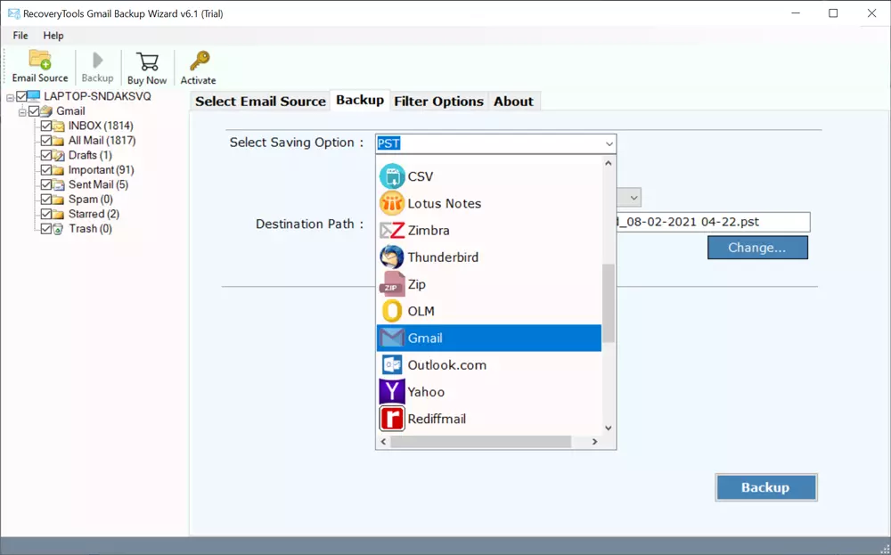 如果僅授予訪問權限並不能滿足您的需求,並且您想將 Google 帳戶完全轉讓給其他人,請使用BitRecover Gmail 備份工具。這是將數據從現有 Gmail 帳戶轉發給另一個人的最安全的解決方案,包括所有電子郵件、聯繫人和其他信息。它能夠準確、安全地將 Gmail 帳戶轉移到另一個人的帳戶。