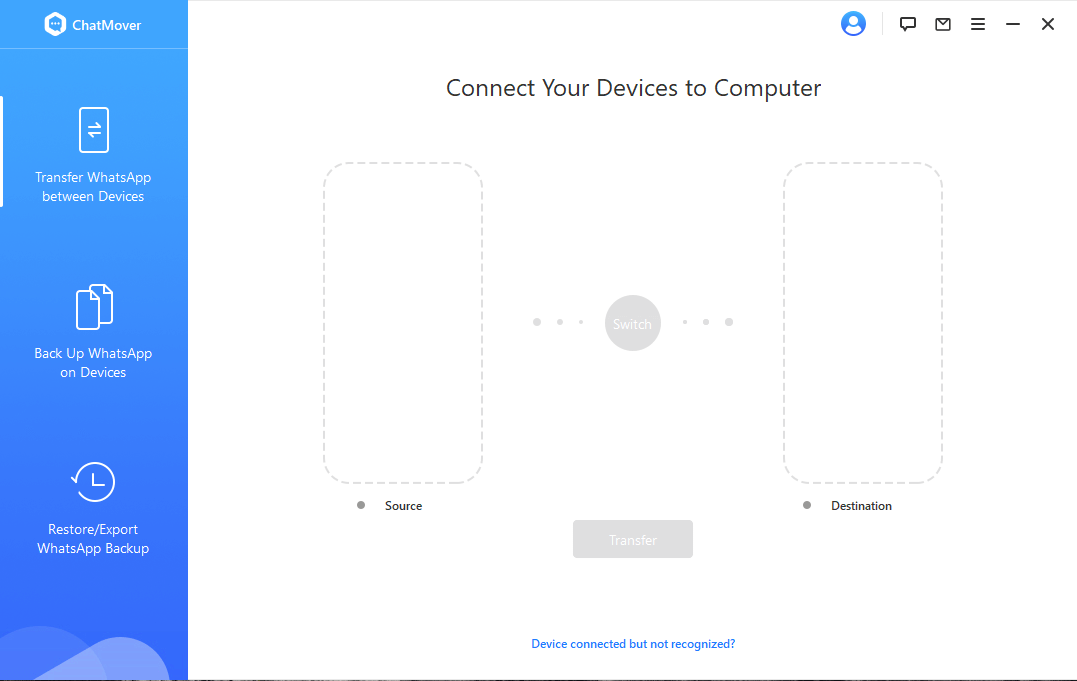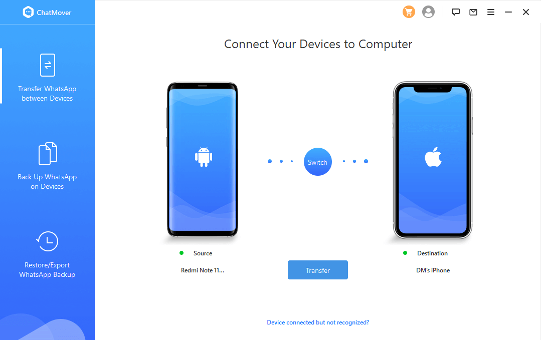 這是將 WhatsApp 從 iPhone 快速轉移到 iPhone 的簡單方法。如果您在此 ChatMover 界面上單擊正確的控件就足以成功完成傳輸過程。
