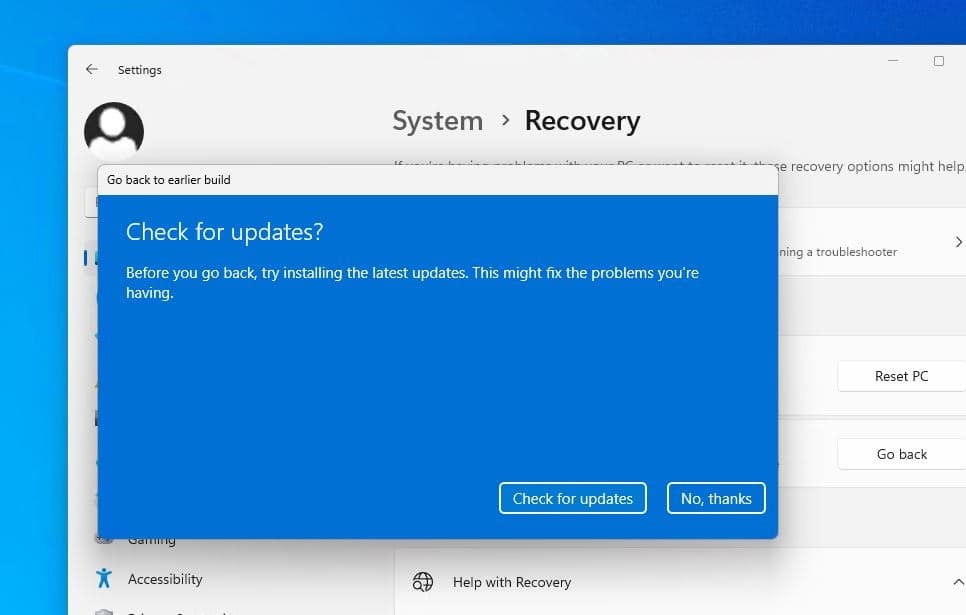 Windows 11 中的恢復設置提供了卸載最新更新並轉到早期版本的選項