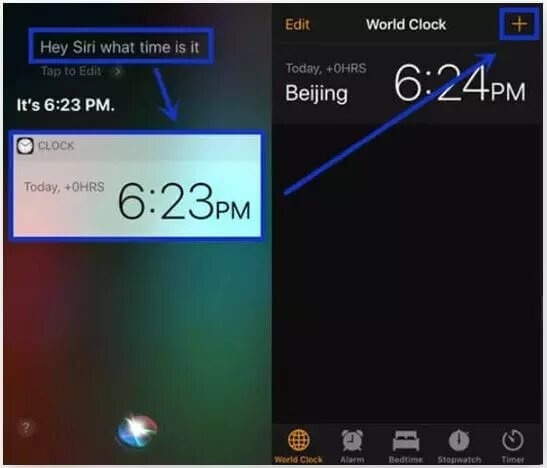 - 按住主屏幕按鈕並詢問 Siri:“嘿 Siri,現在幾點了?”然後 Siri 顯示時間。