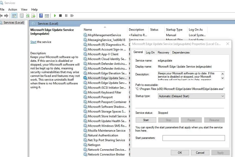 - 向下滾動找到'Microsoft Edge 更新服務' 右鍵單擊它並選擇重新啟動。