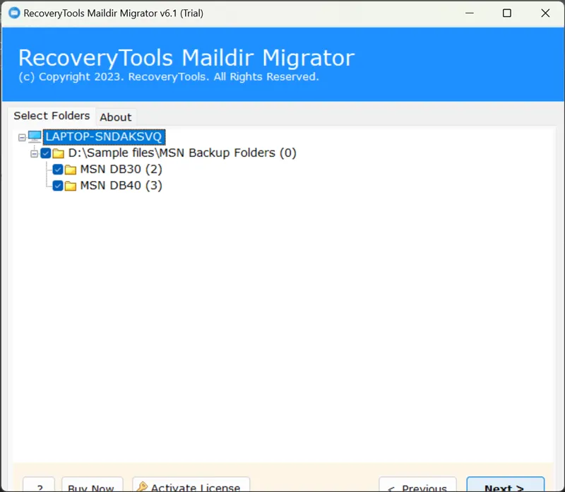 是的, 當然!我們有一個免費軟件解決方案來查看 MSN DB30 和 DB40 文件夾。此外,您還可以使用我們的專業實用程序將 MSN DB30 和 DB40 文件夾轉換為多種標準格式,即 PST、MSG、EML、EMLX、MBOX 等。