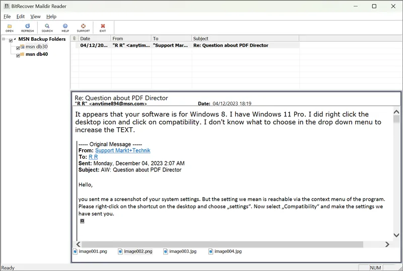 我取消了 MSN 會員資格,但我有 MSN DB30/DB40 文件夾的備份。我可以使用你們的軟件打開並讀取那些備份的MSN DB30/DB40文件夾嗎?可能有 9,000 封電子郵件。