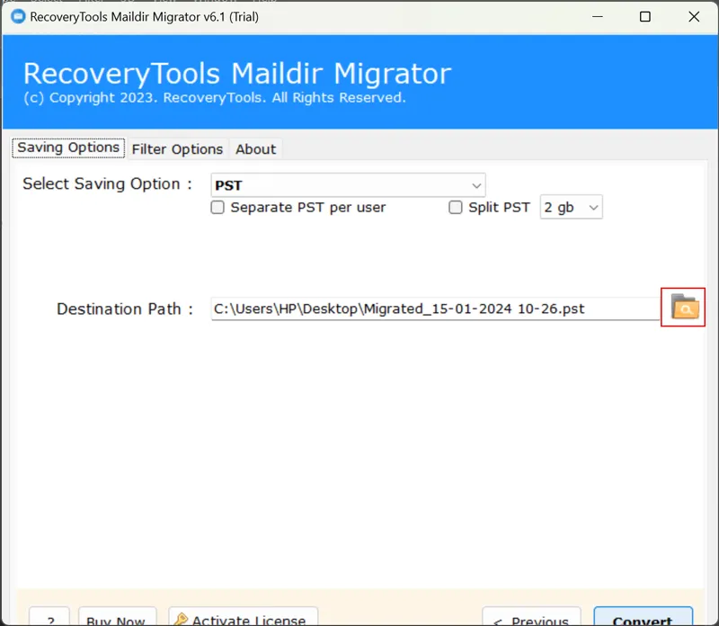 首先,使用上面推薦的 MSN DB40 轉換器,將您的 MSN DB30 和 DB40 文件夾轉換為 PST、MSG、EML、MBOX 和其他標準格式。此後,將生成的電子郵件導入首選電子郵件客戶端,如下所述: