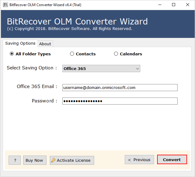 我發現OLM轉換器,一個神話般的實用程序。因為它提供了眾多功能和直接方法將數據從 OLM 遷移到 MS Office 365。
