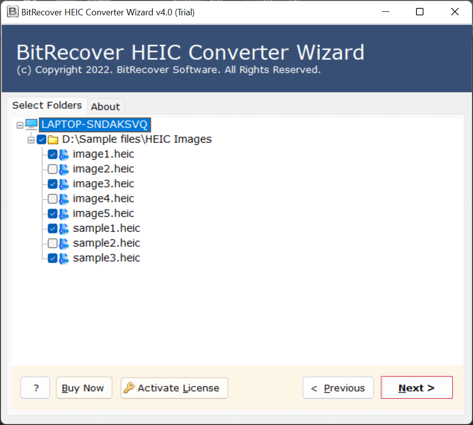 但是,如果您不想採用上述方法,或者您最喜歡的圖像編輯應用程序尚未更新為支持 HEIC 格式。那麼,我們想跟大家分享一個更得體、更簡單的將iPhone圖片轉換為JPG的方法——BitRecover HEIC 圖像轉換器解決方案。顧名思義,該工具可讓您將 iPhone 實時照片轉換為 JPG,整體圖像質量更好。得益於簡單的文件選擇選項,操作起來很簡單。