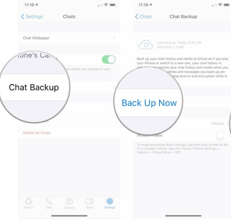 - 6. 現在,當您將 iPhone 連接到 Wi-Fi 網絡時,您的 iPhone 會自動將所有 WhatsApp 照片和聊天內容備份到 iCloud。