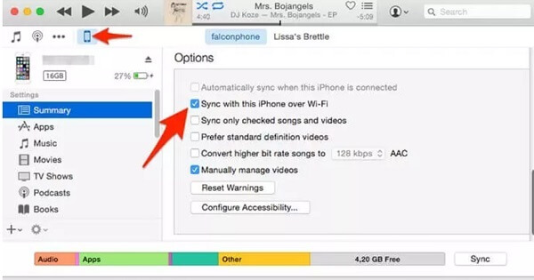 - 3. 轉到摘要選項卡,您將在其中看到通過 Wi-Fi 同步 iPhone 的選項。檢查該選項,然後保存最近的更改。