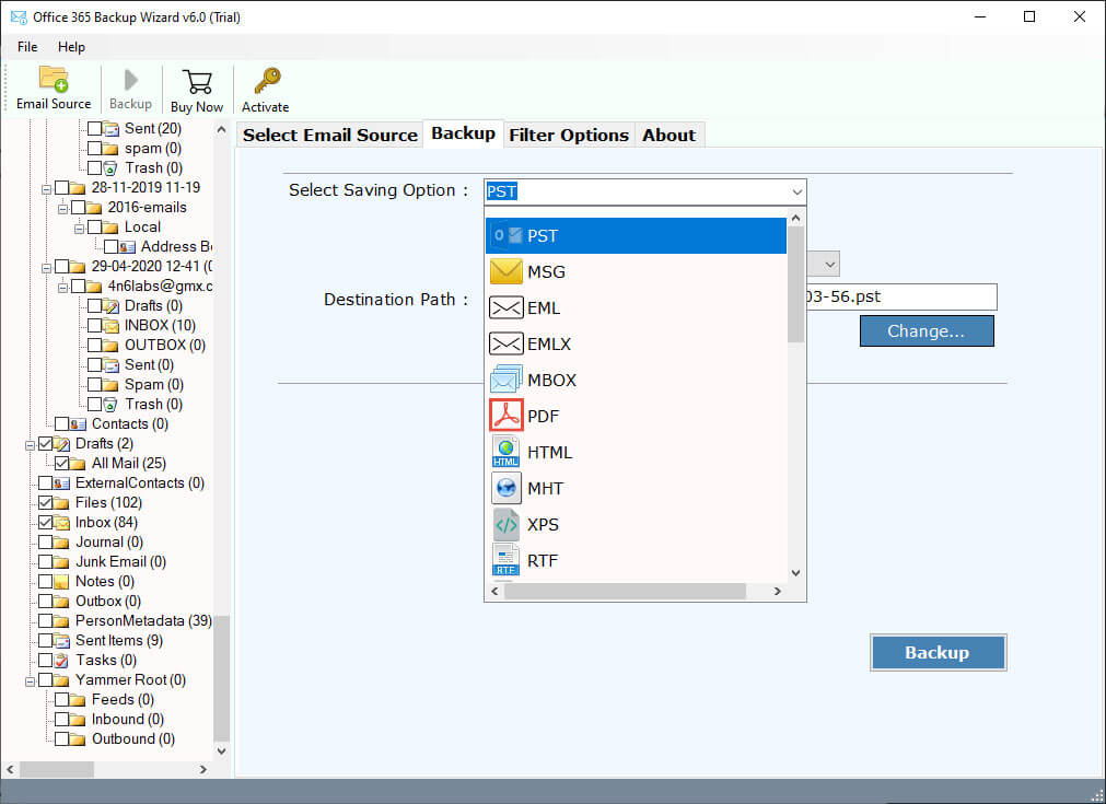 - 選擇所需的保存格式以備份Office 365在線檔案。