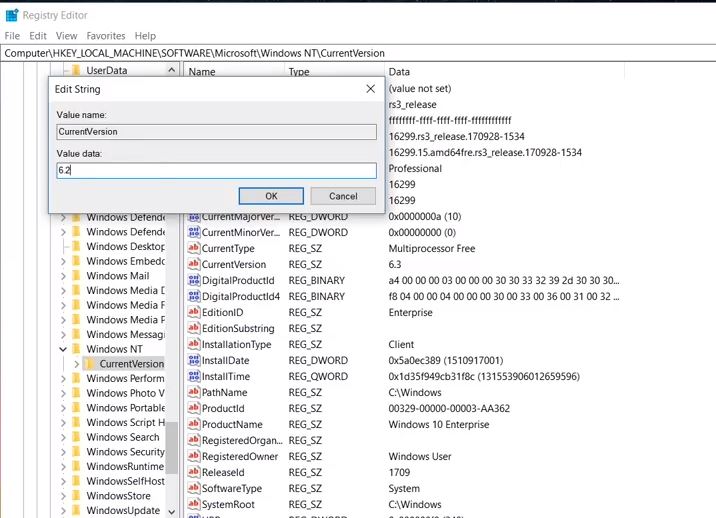 - 雙擊當前版本並將其從 6.3 更改為 6.2