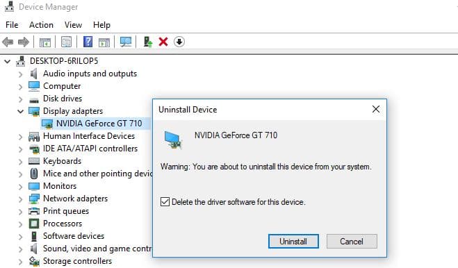 - 選中刪除該設備的驅動程序軟件,並在要求確認時再次單擊卸載。