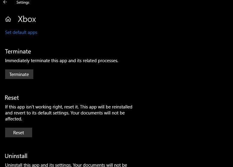儘管如此,Xbox 遊戲欄仍無法正常工作,那麼您還可以嘗試將 Xbox 應用程序設置重置為默認值,這應該可以解決所有與遊戲欄相關的問題。