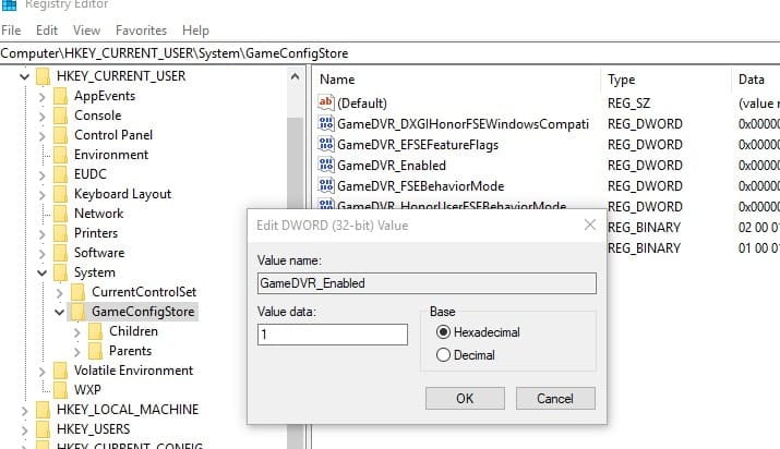 HKEY_CURRENT_USERSoftwareMicrosoftWindowsCurrentVersionGameDVR