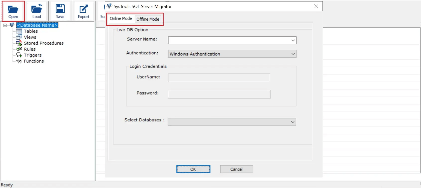 - 安裝並運行數據庫遷移工具。單擊“打開”按鈕打開數據庫文件。