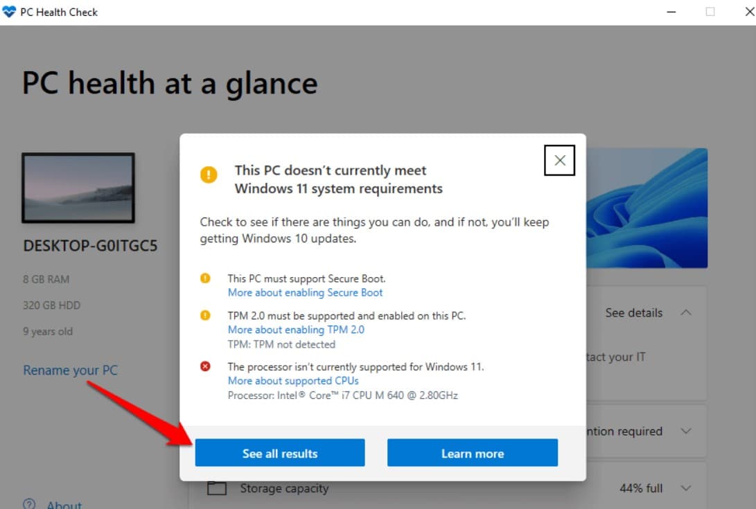 另外,您還可以運行PC健康檢查工具確保您的電腦滿足 Windows 11 的最低系統要求。此工具將檢查兼容性問題,並在不滿足任何要求時提供建議。