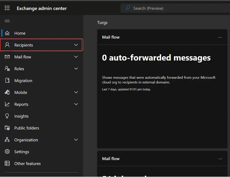 - 轉到 Exchange 管理中心並選擇收件人>>郵箱>>更多選項•••繼續。
