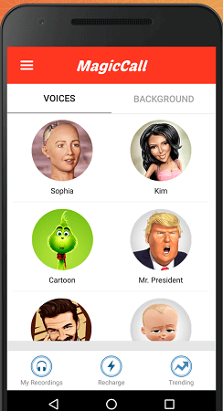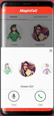 MagicCall 提供生動的屏幕分辨率和界面,讓用戶輕鬆訪問。應用程序中有多個選項卡,其中包括語音和背景。瀏覽“聲音”部分,您會發現孩子、夢幻女孩、卡通等聲音。單擊它後,您將能夠測試聲音或將其用於通話。