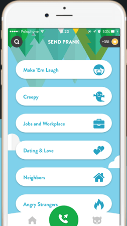 步驟1:從庫中選擇預先錄製的惡作劇(如男變女),並通過從列表中選擇聯繫人來撥打萬無一失的惡作劇電話。