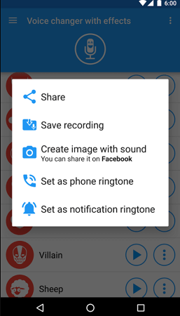 步驟5:使用 Whatsapp 變聲器男變女選項在通話過程中播放額外的音效。