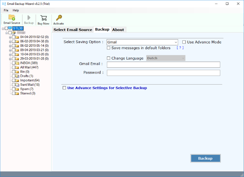 - 單擊備份按鈕開始將 Verizon 電子郵件傳輸到 Gmail 帳戶。