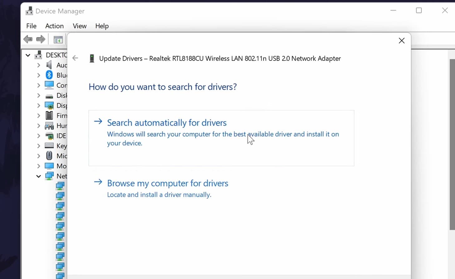過時或損壞的網絡驅動程序可能會導致連接問題。如果 VPN 經常斷開連接,更新或重新安裝網絡驅動程序可確保您的網絡硬件正常運行。