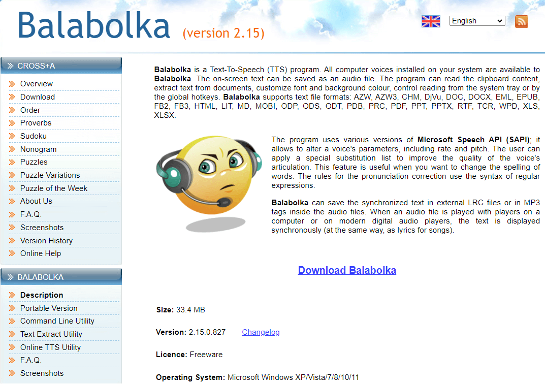 Balabolka 是一款利用 SAPI 技術的多功能免費文本轉語音語音生成器。憑藉其廣泛的聲音,您可以輕鬆找到類似於米老鼠的聲音來進行引人入勝的配音。