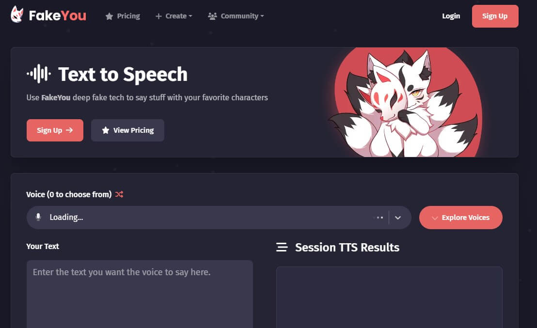 Fake You 是一款在線米老鼠文本轉語音生成器,可提供多種聲音,供您在項目中免費使用。憑藉其用戶友好的平台,即使是初學者也可以通過簡單地輸入文本並選擇所需的藝術家的聲音來輕鬆導航並生成高質量的語音轉換。