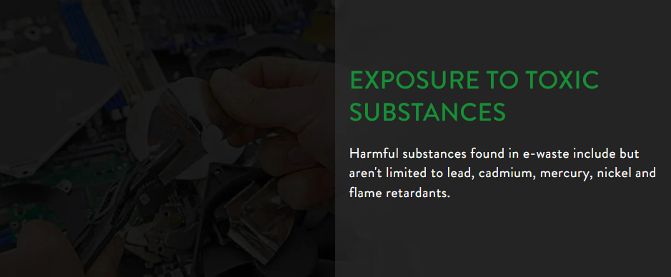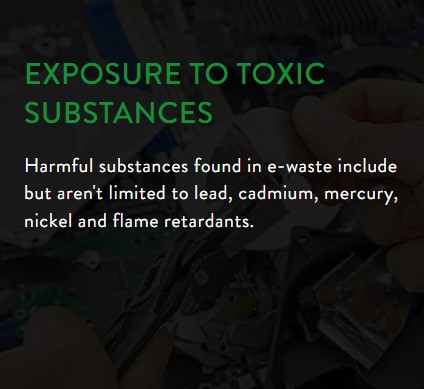 電子廢物會污染水和土壤,損害生態系統和淡水源,而參與電子廢物管理的工人會接觸有毒物質,導致各種健康問題。
