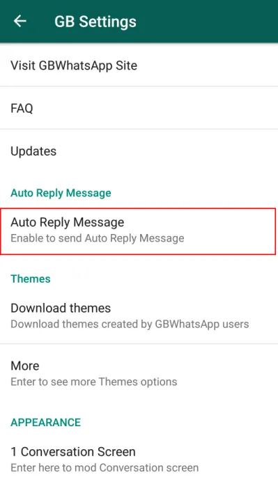 自動回复 –厭倦了一次又一次向許多聯繫人輸入相同的消息?不用擔心。當您希望隨時自動回復任何朋友時,您可以使用 GB WhatsApp 的自動回复功能。