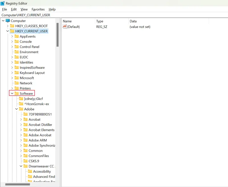 4. 打開註冊表編輯器並導航到 HKEY_CURRENT_USER\Software\Microsoft\Office\8.0\Outlook。