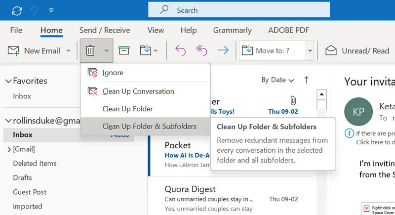 如果您在 Outlook 文件夾中看到重複的電子郵件,那麼您還可以使用清理文件夾選項。建議使用此工具從所有 Outlook 版本導出的 PST 文件中刪除重複的電子郵件。