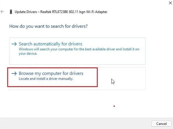 - 之後,單擊“讓我從計算機上的可用驅動程序列表中進行選擇”。