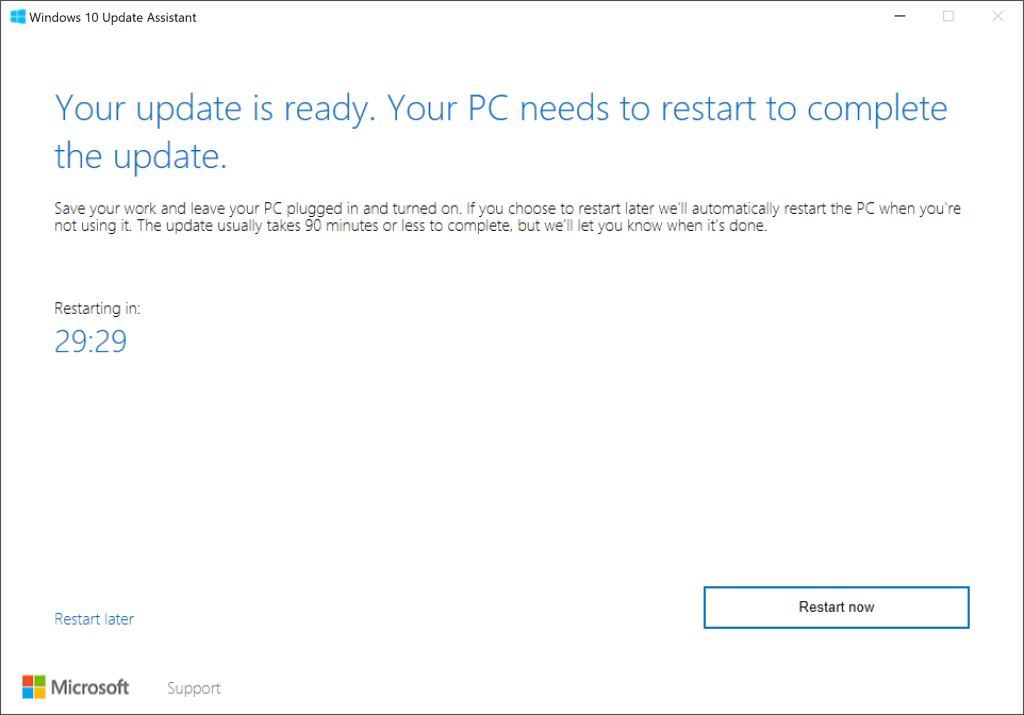 - 30 分鐘倒計時後,助手將自動重新啟動您的計算機。