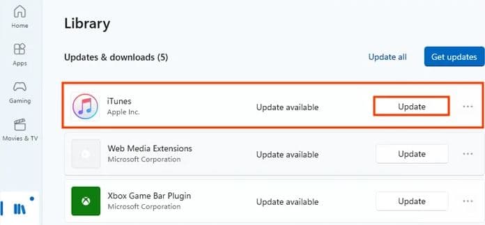 運行舊版本的 iTunes 應用程序可能是 Windows 11 無法識別 iPhone 的原因。讓我們使用 Microsoft Store 中的最新版本更新 iTunes 應用程序。