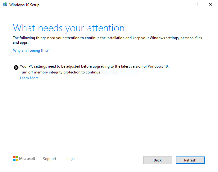 在升級到最新版本的 Windows 11 之前,需要調整您的電腦設置。關閉“內存集成保護”以繼續