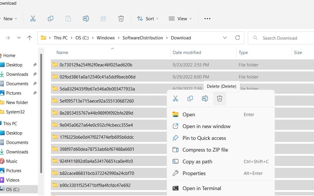 - 現在按 Windows 鍵 + E 打開文件資源管理器並導航到以下路徑,C:WindowsSoftwareDistributionDownload