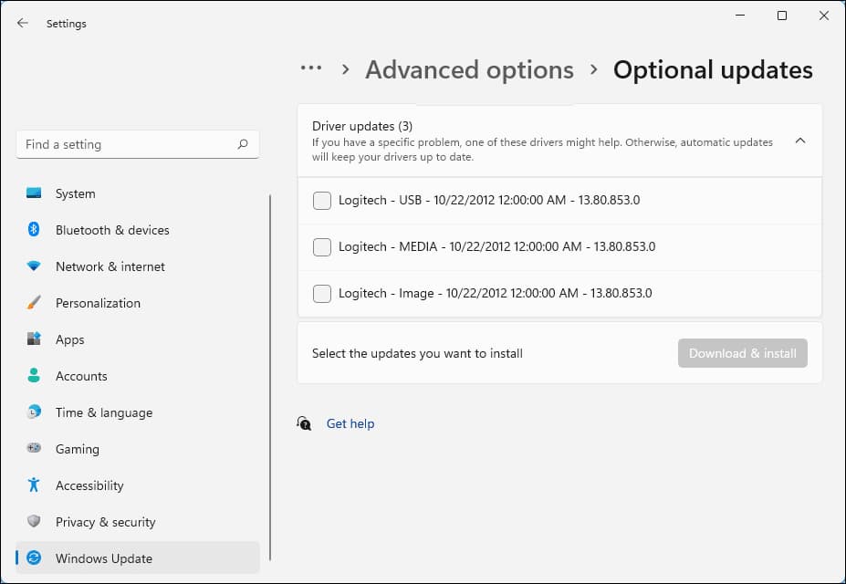 - 單擊“高級選項”,然後單擊“可選更新”,如果有可用更新,請單擊“下載並安裝”。